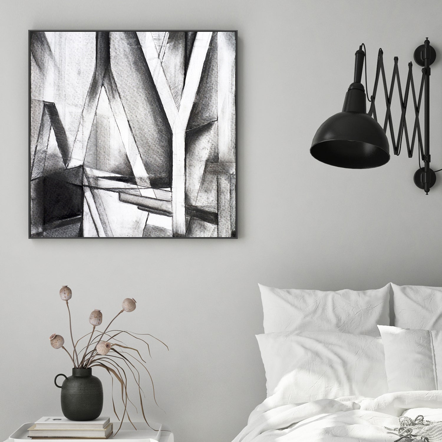 Monochrome Angles, Style A, Hand-Painted Canvas